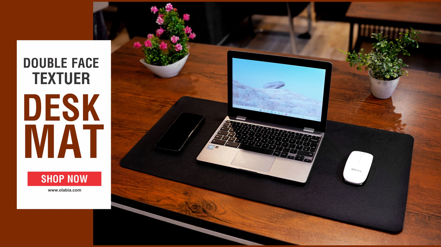 "Enhance your workspace with the premium Desktop Mat from Olabia. Designed for elegance and durability, it protects your desk from scratches, spills, and everyday wear while giving a stylish touch to your setup. The smooth surface ensures easy writing, typing, and seamless mouse control, making it perfect for office, study, or gaming use. At Olabia, we believe in blending comfort with functionality, and this desk mat is crafted to deliver both – keeping your desk organized, protected, and looking professional."